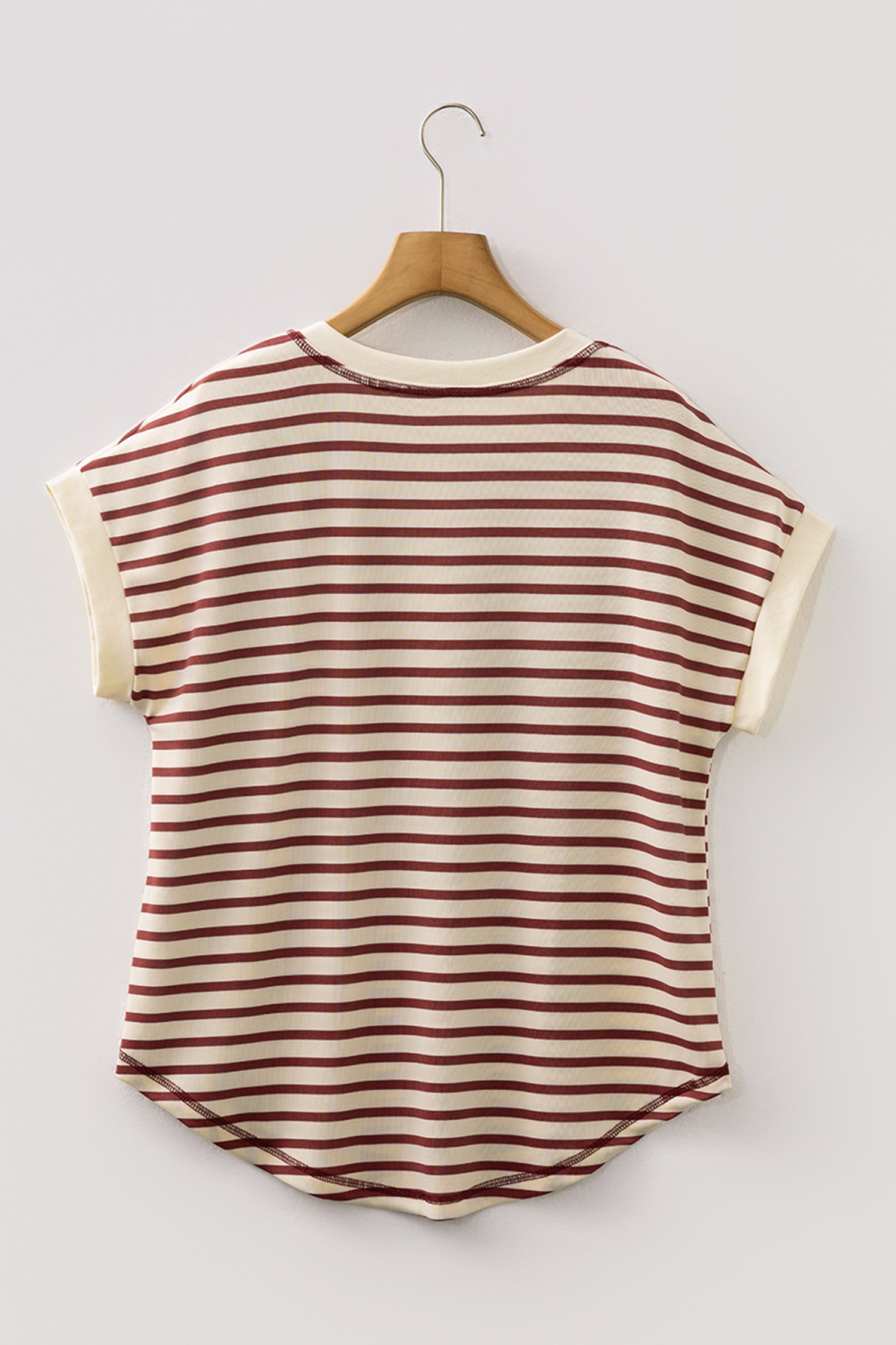 This casual striped T-shirt features a classic round neckline with a stylish half-button detail for an easy, everyday look. Made from a soft, breathable textured fabric, it keeps you cool and comfortable all day long. The timeless stripe pattern adds a chic touch to any outfit, making it perfect for layering or wearing on its own.